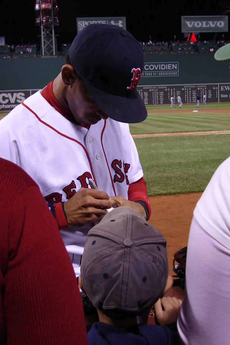 "During batting practice, Julio Lugo was tossing the ball with his teammates getting ready for the game to start. On his way back to the dugout, Julio stopped to say hello to Jake, who was wide-eyed and eagerly watching the warm-ups while perched on the concrete wall. His hands, tucked into his fleece pocket, were shaking as he tried to free the baseball from them so Julio could sign it. Julio just patiently waited and smiled. When he finished greeting Jake and the other eager fans, both young and old, Jake turned to look at us with a rush of tears streaming down his face. I remember hearing a nearby fan say in pure adult-like fashion: "Oh, what a shame, he didn't get the ball signed; Julio must have blown him off.” But the reality was that just the opposite had happened. Julio was gracious and kind; he spent time talking with Jake and made certain to sign that baseball before returning to the dugout. Jake was just so overwhelmed with happiness and in awe of the kindness he found in one of his baseball heroes that the tears just flowed from there and lasted, to one degree or another, throughout the game."